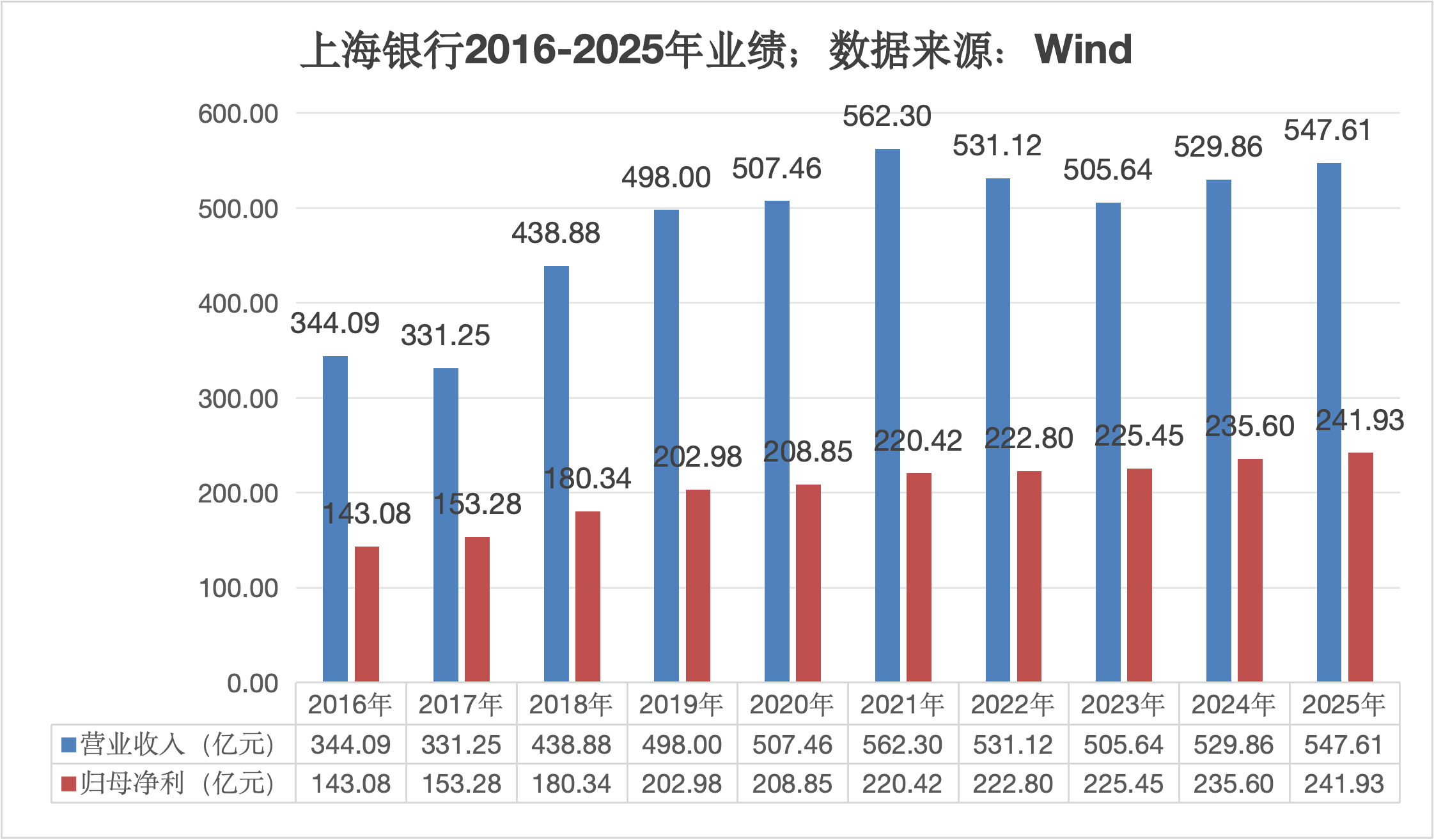 4月24日,上海银行披露公司2025年录得营业收入547.61亿元,同比增长3.35%;归母净利润241.93亿元,同比增长2.69%;